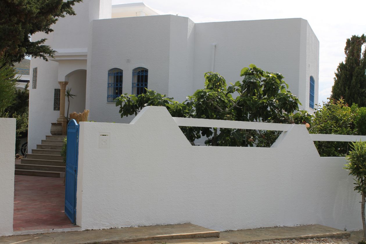 Villa située au Cap Bon à El Haouaria. Elle est de composée d'un grand salon donnant une terrasse vue sur mer, grande cuisine équipée, 3 chambres avec placards, 2 salle de bain. escalier intérieur donnant sur la terrasse supérieur vue sur mer. jardin arboré et gazonné. + Au Rdc une logement indépendant cuisine, coin repas, 2 chambres et salle de bain. climatisation, et panneaux solaire pour production d'eau chaude. cette villa est située à 300 m de la plage.