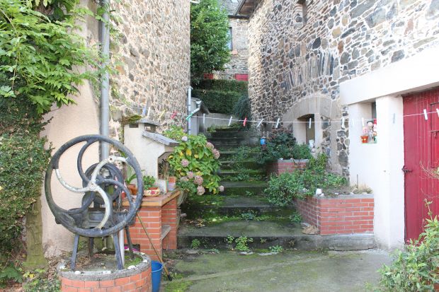 Terrain clos , verger et arbres fruitiers ,jardin paysager et potager ;eau de source et au de la ville si besoin.Village et commerces à 3 kms .ligne internet.