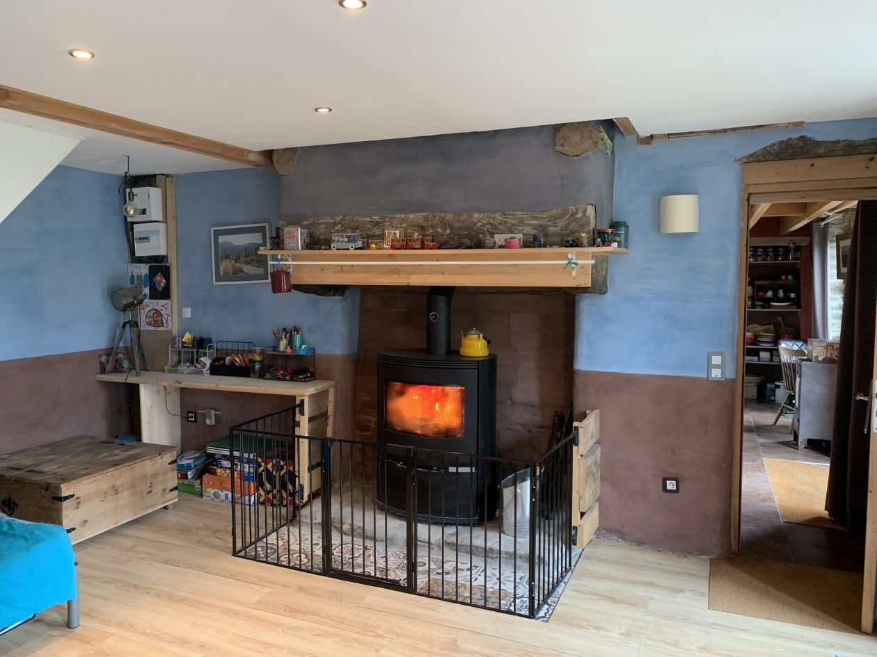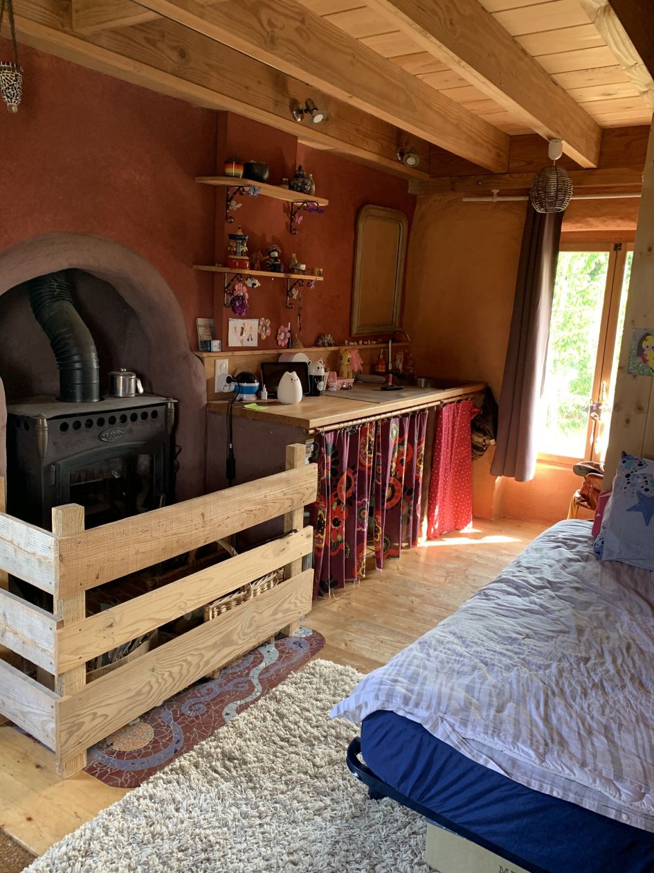Maison en masse (terre) avec jardin clos au calme mais pas trop isolée, sans vis à vis.Maison mitoyenne mais ce sont des dépendances inhabitées.Il y a 3 chambres, rénovée avec des matériaux écologiques, poêle à bois performant et de qualité installé par un professionnel suffisant pour chauffer toute la maison.Portail électrique