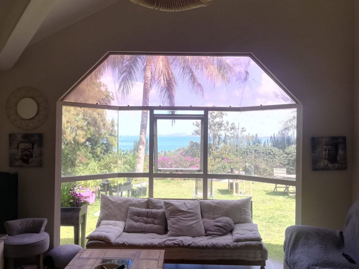 Sur un magnifique terrain arboré ( cocotiers , arbres fruitiers...) et sans vis à vis , niché dans une petite hauteur du Vallon Dore ( 25 km de Nouméa) , avec portail électrique. Cette maison entièrement rénové avec goût , comprend un très grand salon et cuisine américaine équipée avec une vue directe sur le lagon.