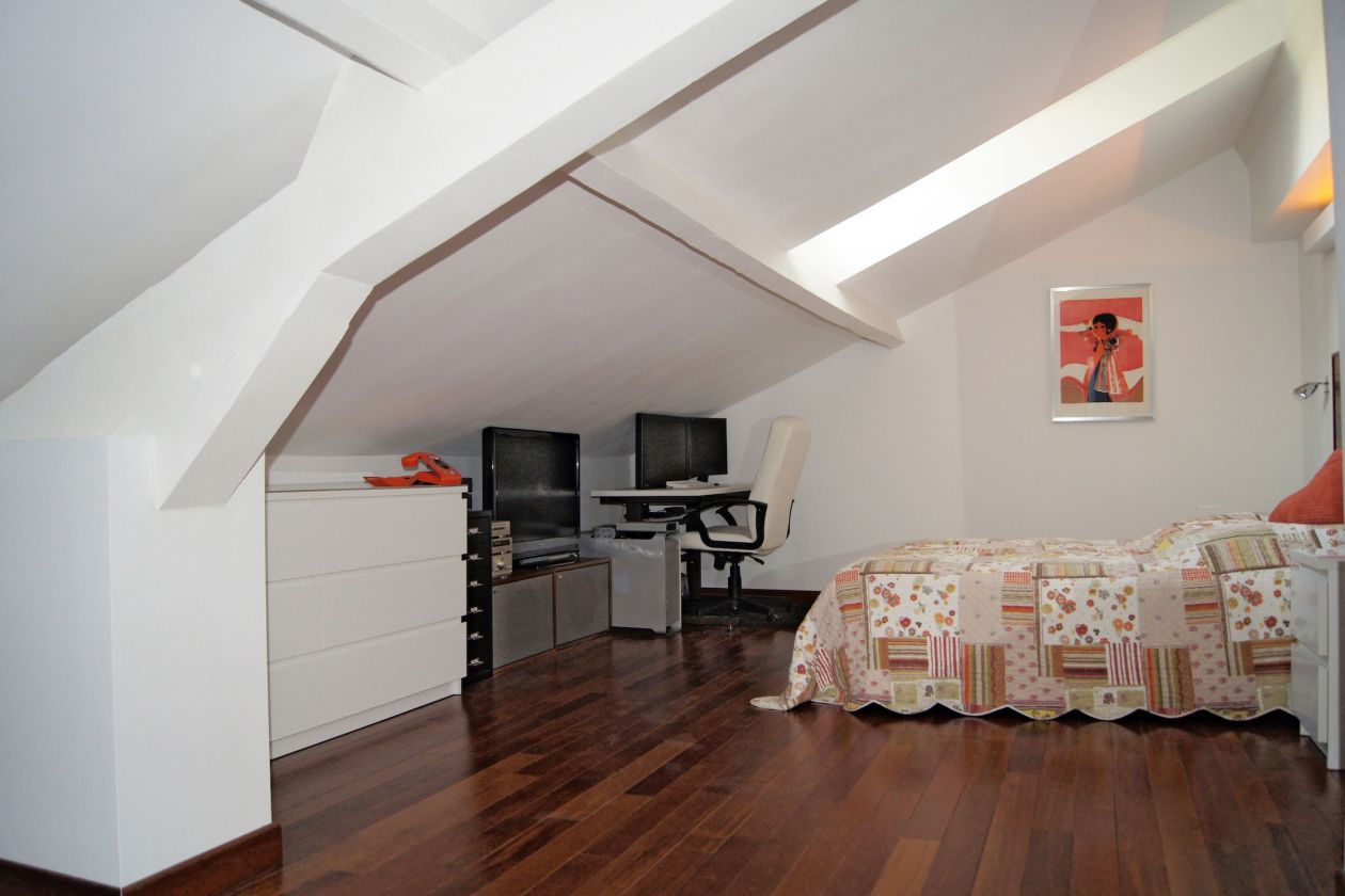 La continuité de la grande chambre à coucher, (8m de long), révèle une confortable et spacieuse salle de bains avec évier en marbre, une baignoire aux formes ergonomiques, une douche cloisonnée carrelée, un dressing, de grands miroirs encastrés et des robinetteries haut de gamme.