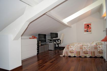 La chambre et la salle de bain reçoivent au sol un parquet en Merbau massif verni haut de gamme, l'isolation est renforcée et l'installation d'éclairages étudiés offre de nombreuses possibilités d'ambiances.