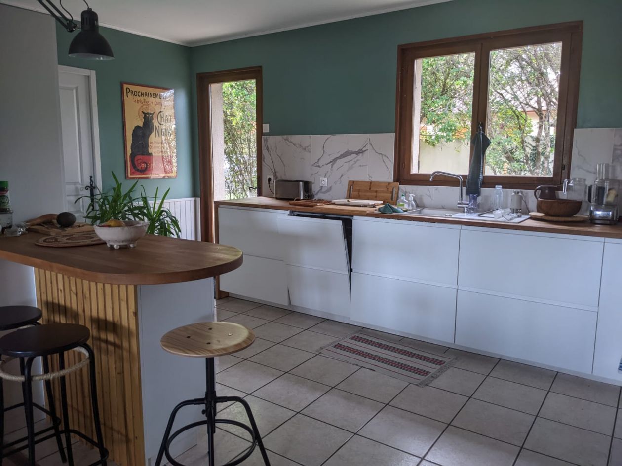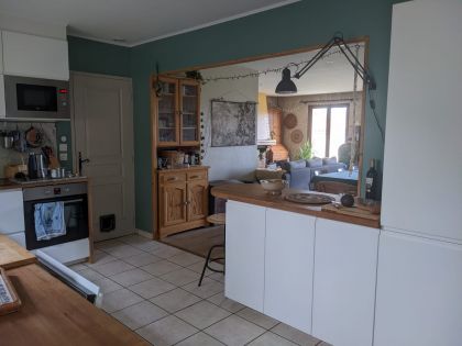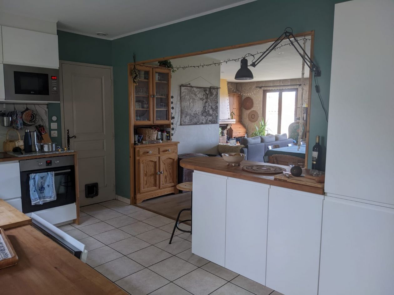 Grand salon avec cuisine ouverte et insert, 3 chambres et un bureau qui peut être transformé en chambre. Garage de 15m2 accolé à la maison. Grand terrain avec fruitiers et de l'espace pour un potager ou construire une annexe.