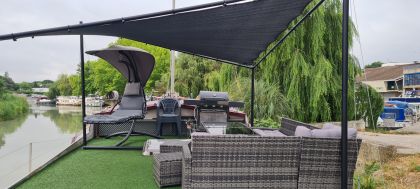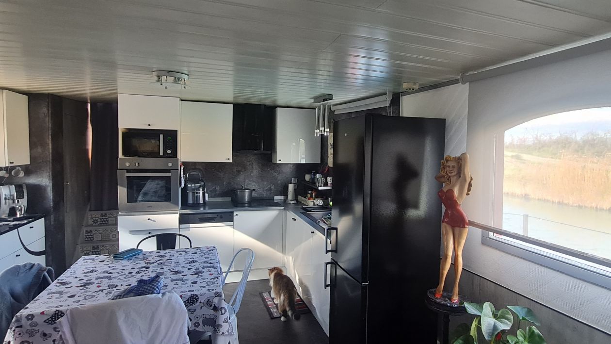 complètement équipée , salon 2 chambres , 1bureau , 2 toilettes , 1 salle de bain douche , 1 salle de bain baignoire balneo , sauna , poel à pellet , clim réversible , actuellement dans petite ville sur canal du midi , etudie toutes propositions