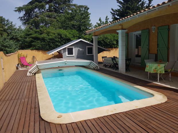 Piscine 4x8 couverte par dôme coulissant, le robot (neuf 2 ans) et tout ce qui concerne la piscine seront laissés. Piscine et arrosage alimentés par l'eau du canal;