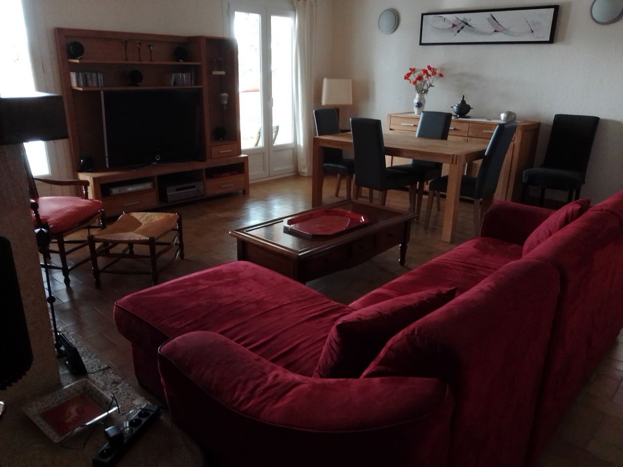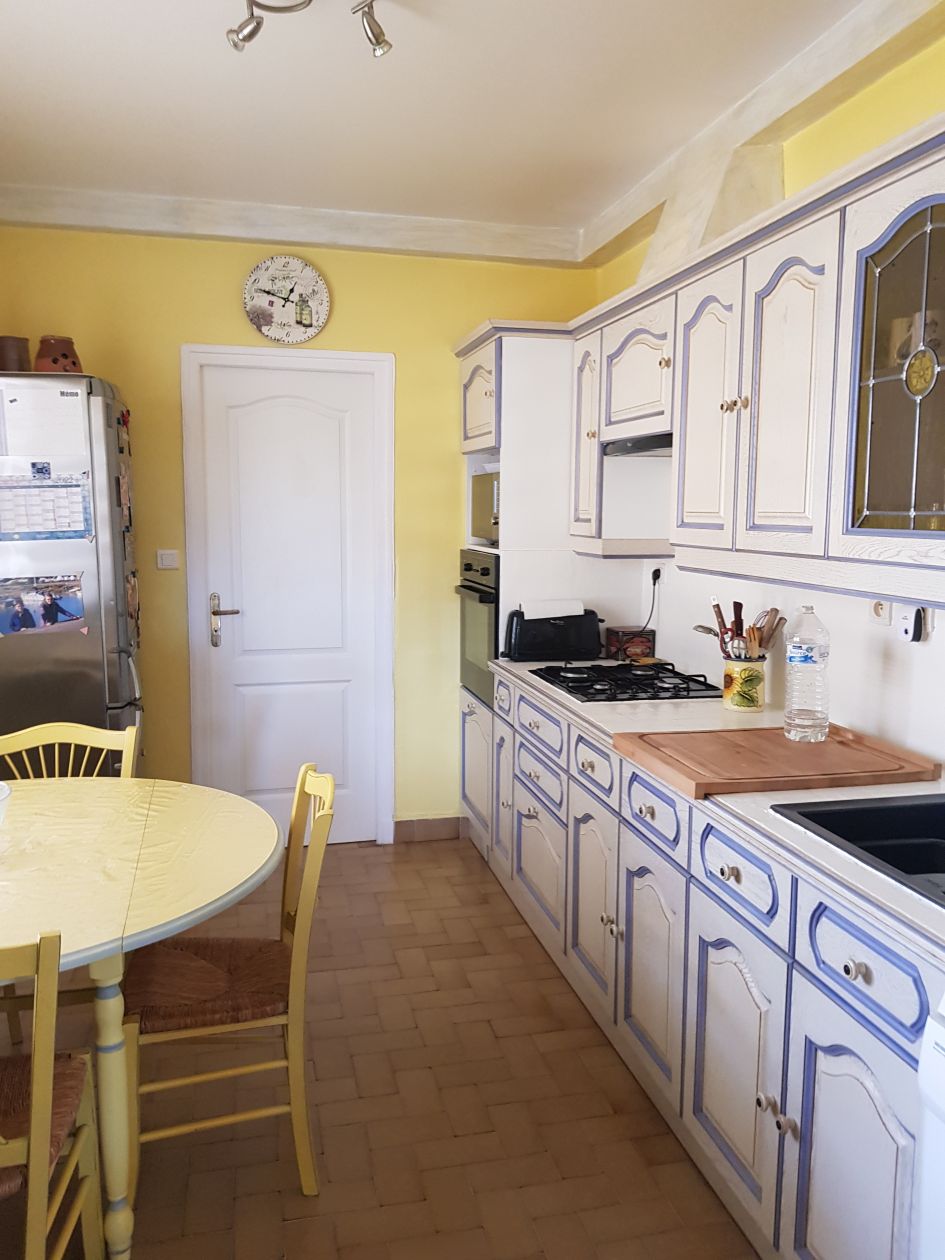 Maison climatisée s' ouvrant sur pièce de vie de 30m2 avec cheminée insert, cuisine provençale équipée et aménagée, 3 chambres avec grands rangements, dont une suite parentale avec petite salle d'eau, douche, 2e wc, buanderie, petit bureau, possibilité dressing supplémentaire, Wc indépendant avec lave-mains, salle de bains (baignoire).