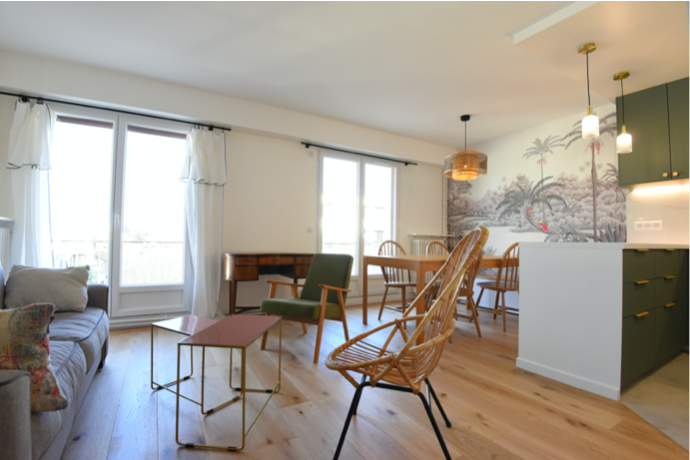 - plan optimisé sans perte d’espace, totalement rénové par une architecte d’intérieur en 2022