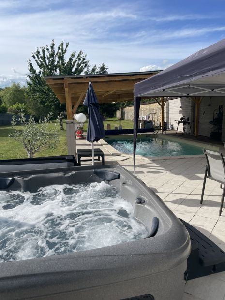 Propriété de deux maisons dont une de 100M² habitable de suite, cuisine équipée salon, 1 chambre, salle de bain, wc séparés et mezzanine, cheminée, cave voutée, terrasse avec cuisine extérieure + salle de douche et toilette, + piscine creusée 4X8 + panneaux photovoltaiques sur toit piscine.