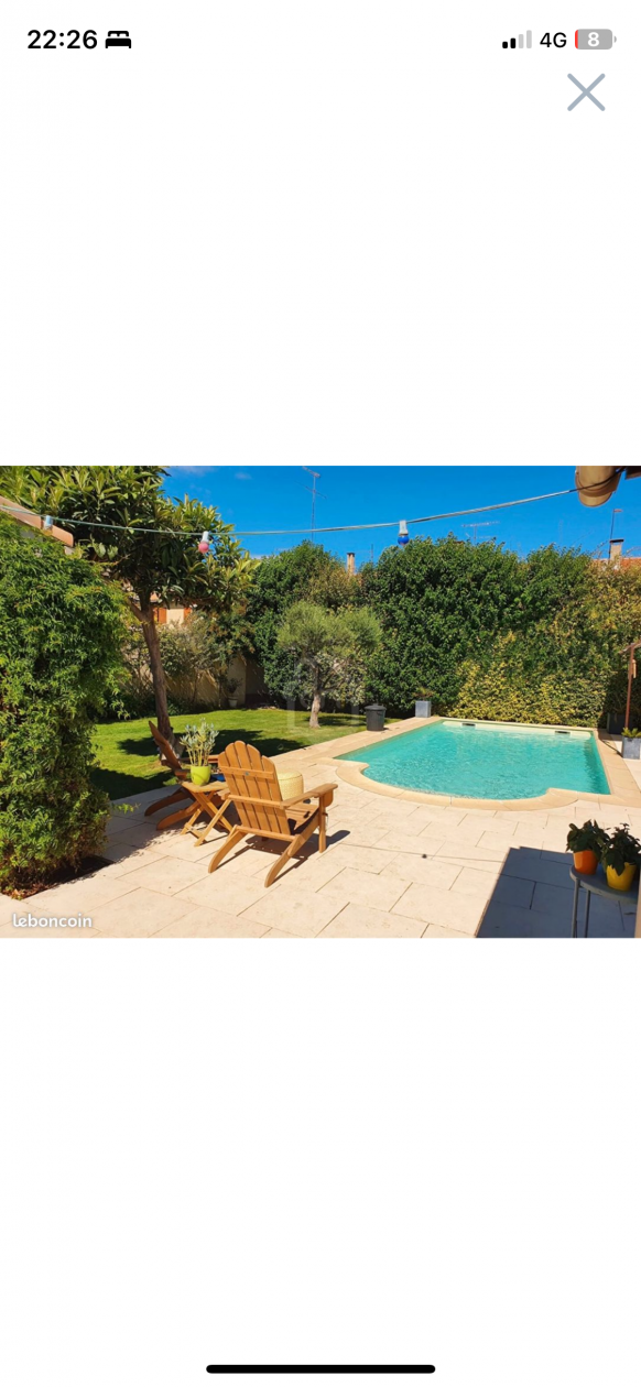Propose maison avec piscine proche mer (Lunel). La maison typique du sud. 4 chambres dont une suite parentale et beau jardin arboré avec piscine. Ville ayant une clinique et tout les sévices de santé, culturel et alimentaire.