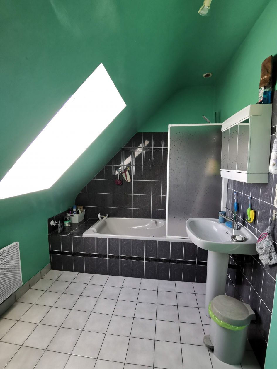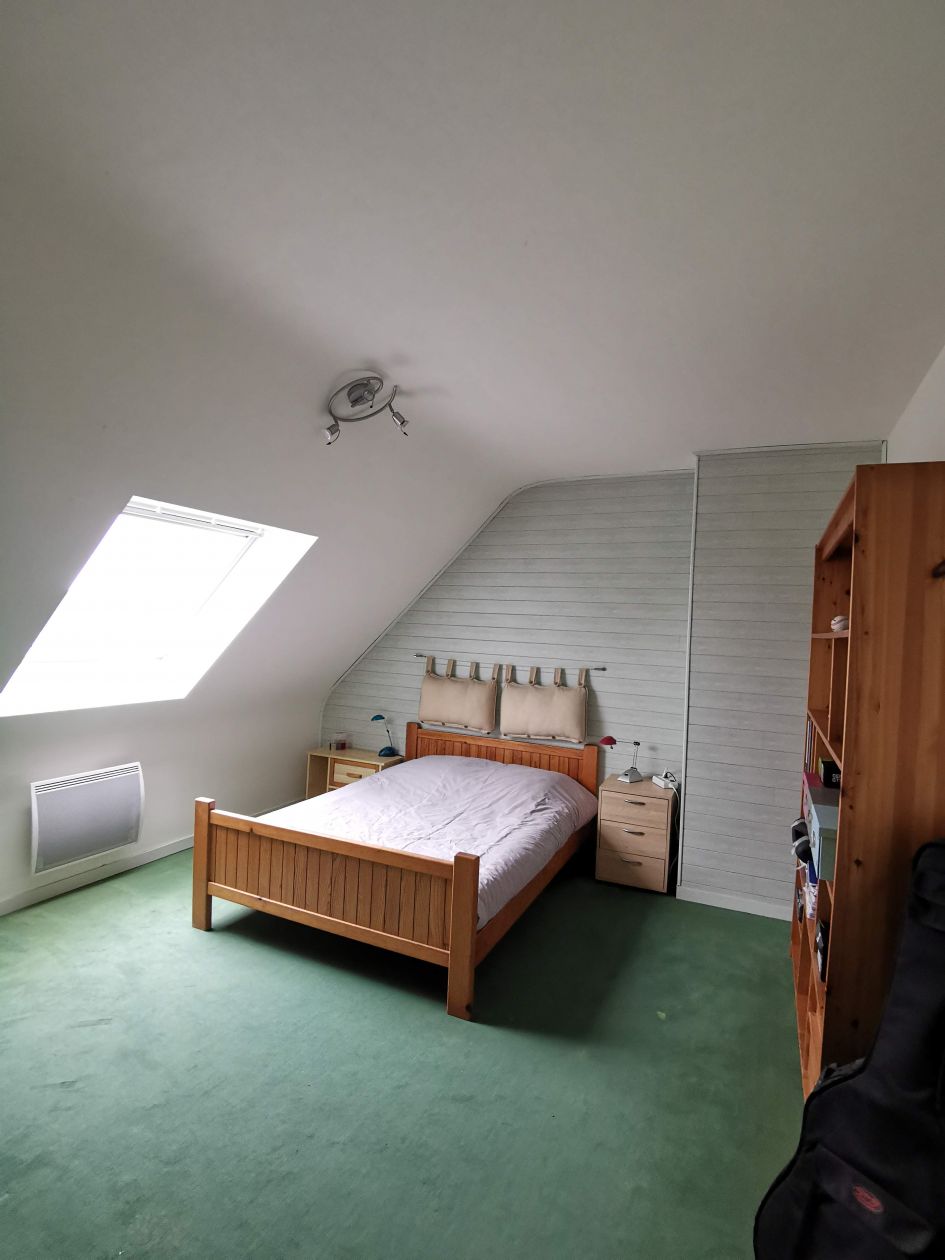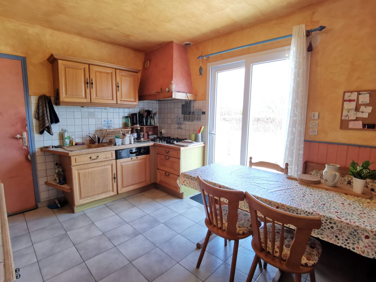 Au rez-de-chaussée : séjour lumineux de 30 M2 avec insert, chambre, cuisine indépendante (possibilité d'ouverture sur le séjour), toilettes. À l'étage, 4 chambres, salle de bain. Grenier sous les combles.