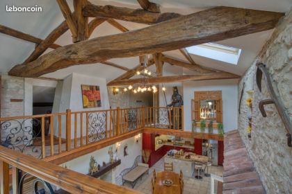 Dans un endroit idyllique en Nouvelle Aquitaine sur les hauteurs d'un très beau village ou règne le calme tout en étant proche de tout. Notre beau domaine s'y trouve avec 2 maisons indépendantes (230m2 et 150m2) dont 1 gîte ( très bon rapport locatif dans la région) De belles dépendances dont une salle de réception de 110m2 Après 2 compromis annulés fautes d'obtention de prêt malgré un bel apport des personnes, nous nous sommes dit au vu de la conjoncture actuelle " pourquoi pas un échange de maisons" pour rejoindre nos enfants dans le Var ou dans les départements limitrophes à moins de 2 h de leurs habitations. Notre propriété est une ancienne ferme rénovée avec ses 2 hectares de Parc et bois entièrement clôturé avec 1 piscine chauffée (traitement au sel). Belles pièces de vie pour chacune des 2 maisons (80m2 et 50m2) 8 chambres au total dont 5 suites avec chacune leur sdb/s d’eau et toilette privée. Possibilité plus. Plusieurs terrasses couvertes 1 buanderie avec douche et toilette. Type de chauffage : clim réversible, cheminée insert et radiateurs à inertie Possibilité d’agrandissement ( portes communicantes, arrivée d'eau et électricité aux normes déjà installées avec fenêtres en pvc et portes fenêtres galandages) très beau potentiel car tout est constructible et habitable. Grange, grand atelier/garage salle carrelée de 110m2 (tout peut-être habitable) Electricité aux normes et fosses septiques également dont une micro station faite en 2022 A 100m de la propriété, les transports scolaires, A 2km les 1er commerces (crèche, primaire, poste, commerces, kiné) A 8 minutes (Super U, Collège, médecins, Lycée, kiné, pompiers, base de loisirs, nautiques, tennis, Golf, équitation… A 12 minutes les ZA et grandes surfaces, gendarmerie, Lycées, gare SNCF, … A 20mn hôpital, Cure Thermale … A 1h15 de Bordeaux et 1h40 Toulouse