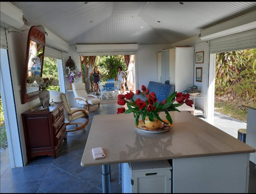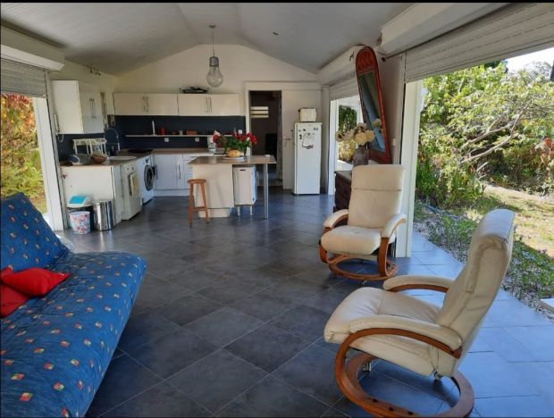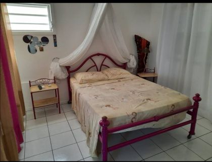 Petite maison à Saint-pierre dans l'ancienne capitale de la Martinique. Construction récente, refaire l'arrivée d'eau qui est actuellement partagée avec une autre maison ( environ 4000 euros ) et quelques rénovations à prévoir mais pas de gros œuvre ( changer la tour de la douche, reboucher quelques trous, revoir un peu la plomberie de la cuisine. ) vue mer incroyable, petit jardin, chemin protègé par un portail électrique partagé avec les deux autres propriétaires de la maison au dessus et la maison en dessous. Très bon investissement locatif, actuellement des locataires à 800 euros par mois, la taxe foncière est à 550 euros l'année, le terrain fait 550 mètres carré en totalité, la maison dispose d'un grand séjour avec cuisine ouverte, entouré de 4 grandes ouvertures à volets roulants, permettant une fois ouvert de se transformer en grande terrasse ( pas de vis à vis. ) il y a aussi un carbet couvert faisant office de terrasse, une salle de bain avec douche à l'italienne et une grande chambre avec placards intégré. Il y a une climatisation dans la chambre et l'eau chaude est en solaire.