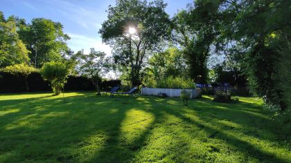 - Jardin arboré de 800 m² entourant la maison, avec un ruisseau en fond de parcelle.