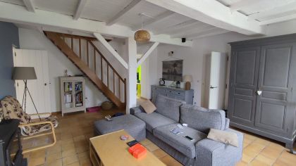 - Salon de 30 m², équipé d’un poêle à bois Chazelle à double combustion, parfait pour les soirées d’hiver.