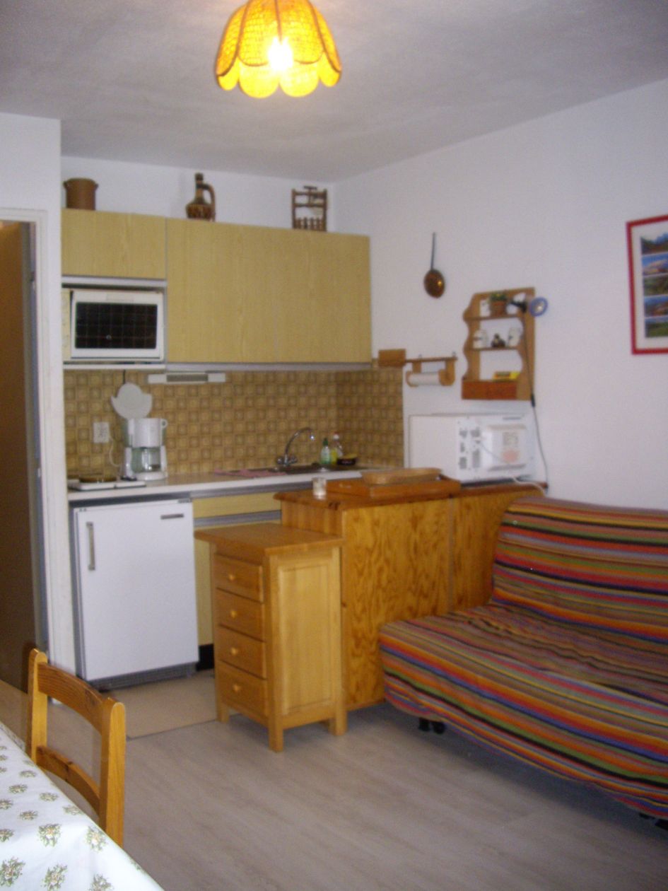 Studio entièrement équipé 6 couchages comprenant : coin montagne 2 couchages 0.80 X 2.00 WC, salle de bain Séparés Séjour 1 Couchage BZ 1.40 X 2.00 (2 places) coin cuisine Alcôve avec 1 BZ 1.40 X 2.00 (2 places) Balcon