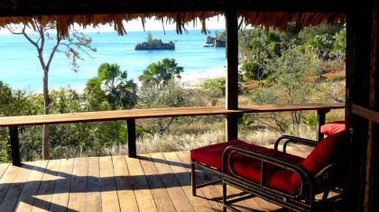 Lodge de charme sur la côte Nord Ouest de Madagascar sur un terrain de 600 X 40 m composé de 5 bungalows doubles et 2 bungalows familiaux tout confort. Chacun équipé de mobilier complet, de douches et sanitaires. Capacité totale de 20 personnes. Personnel sympathique entièrement formé pour un bon fonctionnement. Un bar/restaurant équipé avec possibilité 3 chambres supplémentaires avec douches et sanitaires. Cuisine entièrement équipée. Equipement solaire complet. Piste d’aviation privée. Possibilité de multiples constructions supplémentaires car la moitié du terrain en bord de mer est inexploité. Un bateau 8 mètres avec 2 moteurs de 140CV. Une Nissan Patrol 4x4. Plage de 7 km de long, criques sauvages, faune et flore endémique. Affaire en fonctionnement de très bonne réputation référencée dans tous les guides. Site accessible uniquement en bateau, en avion, hélicoptère ou ULM. Activités et excursions magnifiques aux alentours. Site paradisiaque !