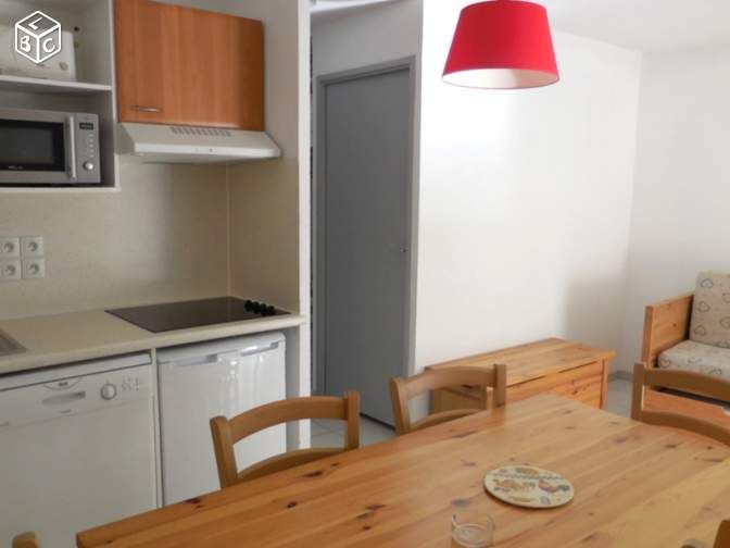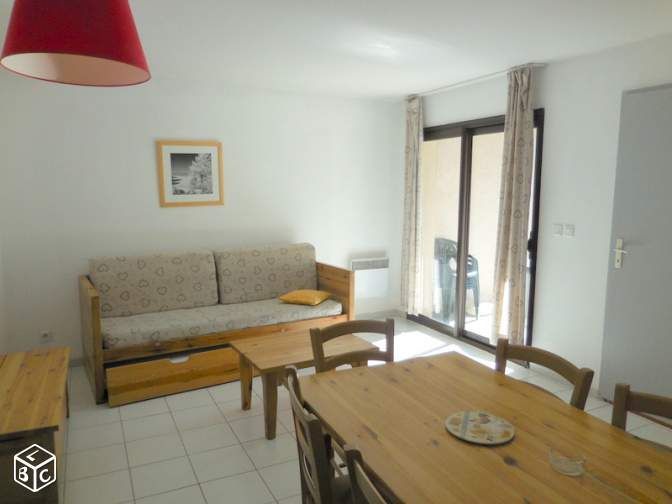 agréable appartement T2 cabine ~38m2 (6 couchages) en rez de chaussée, expo sud avec belle vue dégagée sur fond de vallée. Propose pièce à vivre avec coin salon et coin salle à manger avec cuisine équipée, chambre, cabine avec 2 lits superposés, salle de bain et wc séparé. Très lumineux et pratique avec parking aérien privatif à proximité.