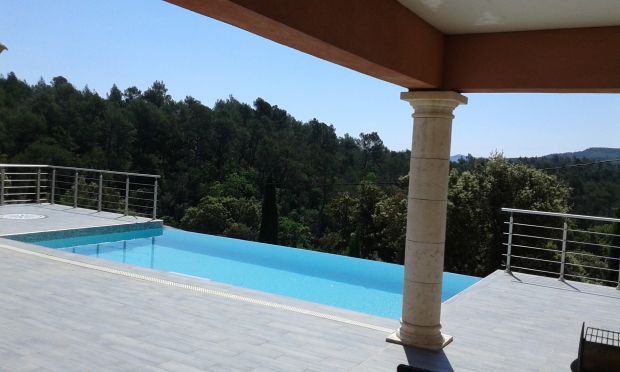Villa indépendante de 173 m² sur un terrain de 2444 m² avec vue dégagée et sans nuisance sonore ni vis à vis. Séjour sur cuisine ouverte de 95m², 5 chambres dont une suite parentale et deux chambres avec chacune leur salle d'eau indépendante. Piscine à débordement de 8 x 4 sur vue dégagée et terrasse carrelée de 150m² environ. Sous-sol de 150m² avec deux entrées garage. Panneaux solaires pour l'eau chaude et aspiration centralisée.