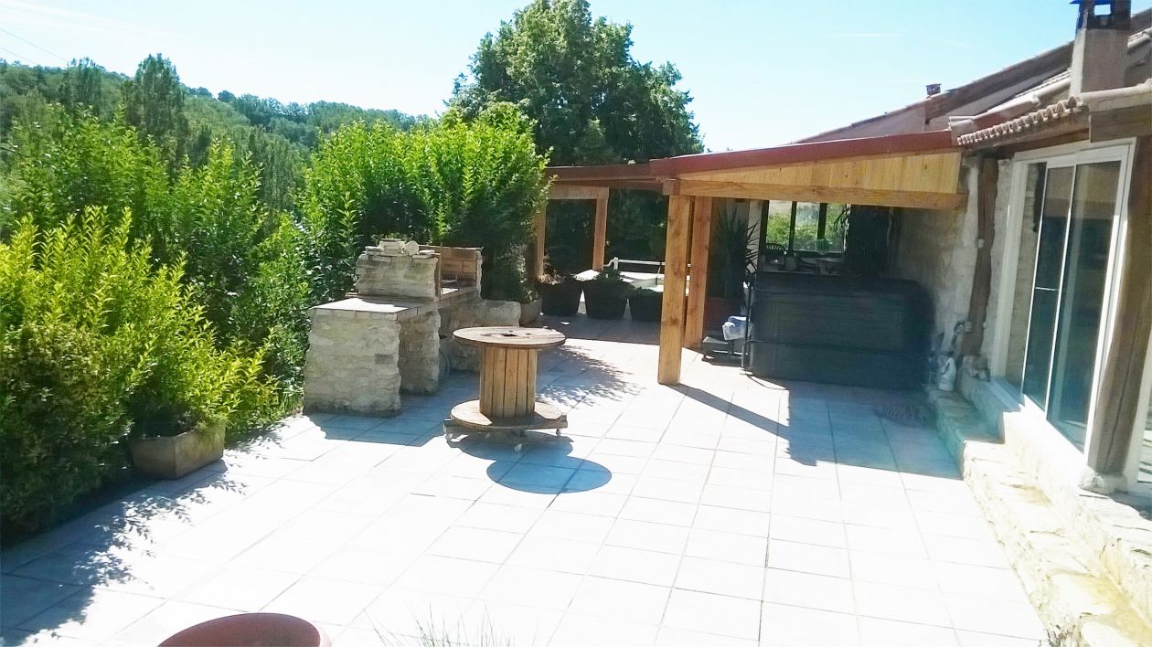 MAISON RENOVEE ANTIEREMENT ET TRES BIEN ISOLEE sur parcelle de 850 M2 AVEC DEUX LOGEMENTS Le premier d'environ 95 M2 constitué d'une pièce à vivre de 45 M2 avec cuisine américaine. Deux chambres - un cellier - une grande salle de bain avec wc- un cellier - Un autre wc . Une terrasse couverte - Un atelier et une grande pièce de 40 M2 - un abri - un abri voiture Piscine en dur couverte (façon spa donnant sur la terrasse) - Terrasse supplémentaire couverte avec spa Une autre partie indépendante de 52 M2 pouvant servir de gîte constituée d'une petite chambre - cuisine américaine - veranda de 20 M2 - avec terrasse et barbecue L'ensemble sur terrain est arboré - fleuri- Coup de cœur assurée Faisant partie de la propriété : Un grand terrain d'envron 8500 M2 non attenant mais proche 40 m entièrement cloturé - arboré et sources avec un fort potentiel.