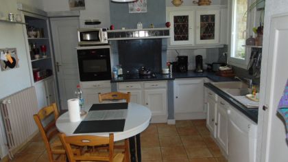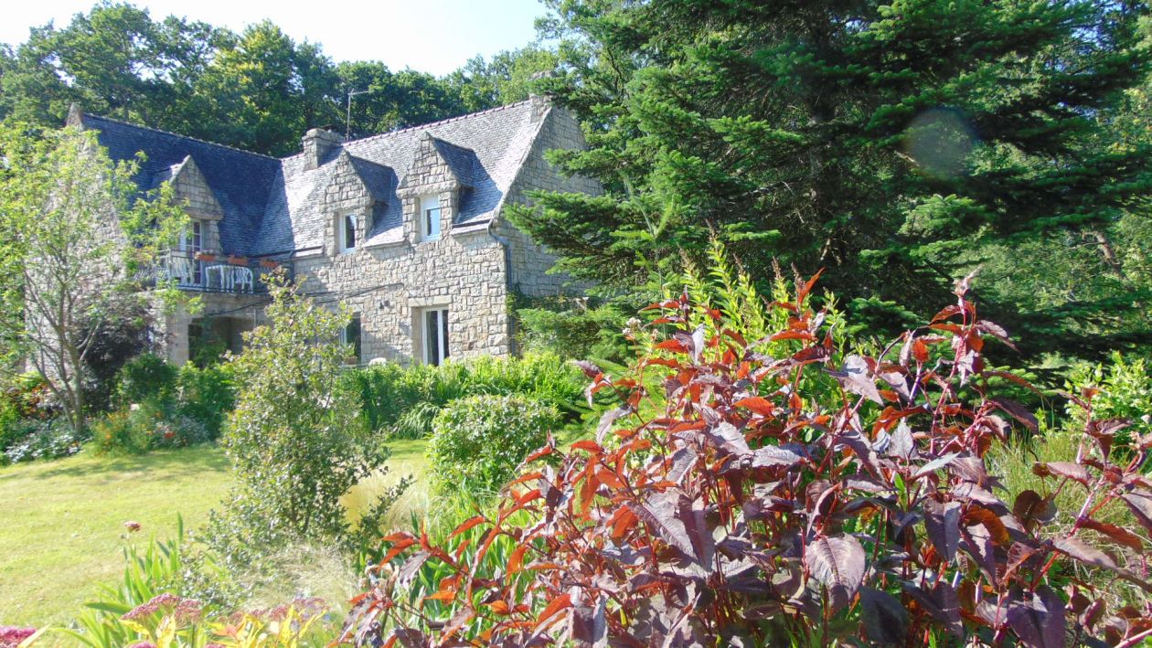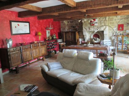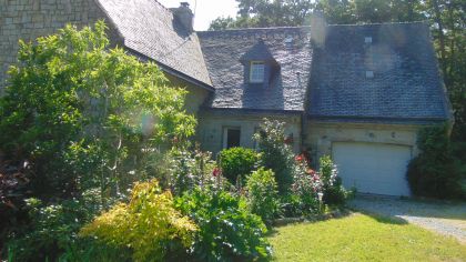 Au calme dans la nature Avec tous les avantages d' une ville 'tous les services a moins d' 1 km :Ecoles,commerces,transports,santé,sports et loisirs . Villa bretonne construite par un artisan macon dans un ecrin de verdure de 6000 m2 ,arboré et fleuri entiérement clos et sans vis a vis en parfait etat. ;1 vaste entée/bureau,1 piece de vie de 50 m2,1 cuisine equipée,1 chambre,1 salle de bains...1 grand garage /buanderie... A l'etage ;5 chambres+ 2 salles de bains Possibilité de l' utiliser comme actuellement avec 3 chambres d' hotes. car separation entre les 2 lieux de vie,(2 escaliers)