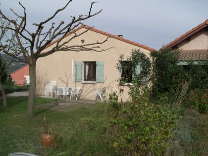 L'extérieur: un garage de 20m²+ mezzanine, entrée, parking, allées, terrasse pavée (100m² environ), pelouse ombragée et talus aménagé d'arbustes et fleurs avec arrosage goutte à goutte.