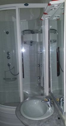 Salle d'eau est grande avec wc, douche et emplacement machine à laver