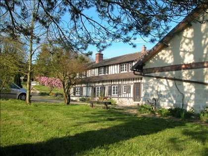 maison de type normande avec vue très belle vue sur la vallée. au RDC gde pièce à vivre avec poele à bois, cuisine équipée, un salon, une salle d'eau (WC et douche), buanderie, couloirs avec placards; à l'étage 3 ch dont 1 avec balcon, 1 SDB.; parquet en chène au RDC, double vitrage, chauffage aquathermique avec production d'eau chaude (2200€/an d'EDF); un garage de 50m2 avec mezzanine. fosse septique au norme.