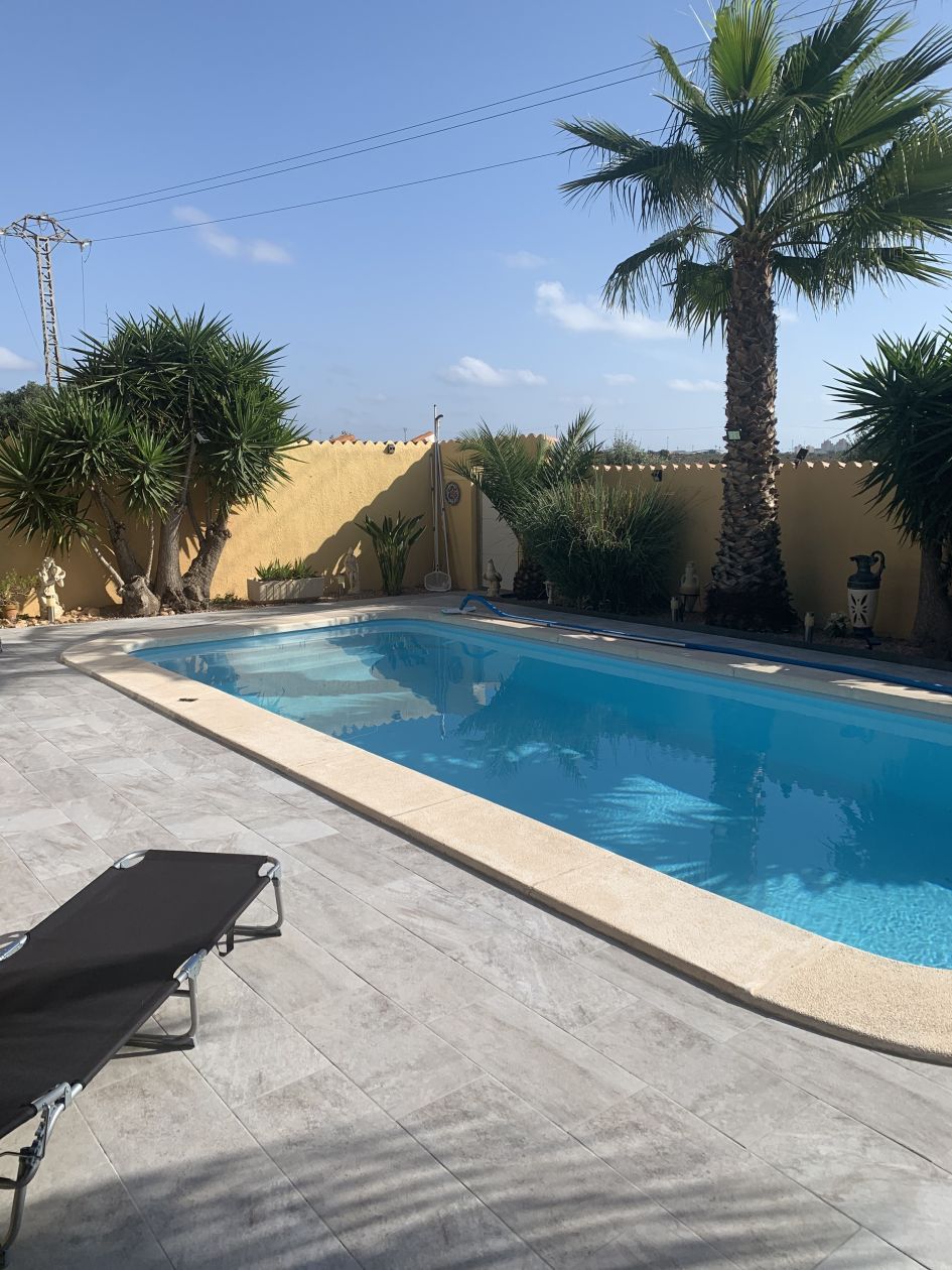 Villa située dans une cité balnéaire Torrevieja , proche centre ville et plage, toutes commodités à proximités. Travaux récents… 4 Chambres d'ont 2 complètement indépendantes. 1 salon - 1 salle à manger avec grandes baie vitrée donnant sur terrasse et piscine. 1 petite cuisine tout équipé. buanderie, cuisine d'été, terrasse, piscine 8x4 place de stationnement sur le terrain de la maison, et large place devant la maison. nombreuses plages à 5 minutes en voiture, nombreux magasins, restaurants, etc.... écoles, lycée, lycée Français à Alicante, aéroport à 30 minutes (Alicante et Murcia)