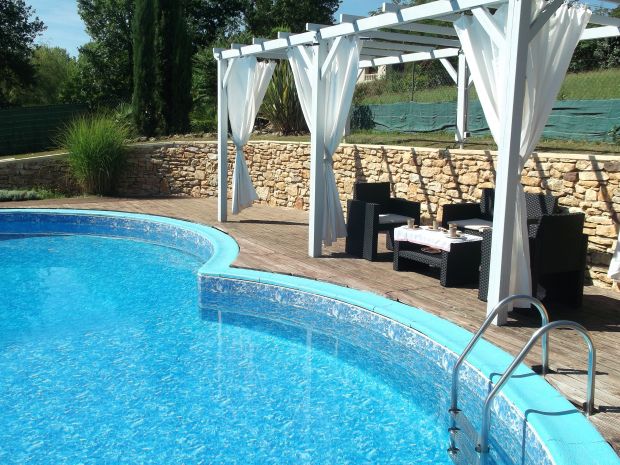 Belle villa dominante sur le village, pour habitation principale ou résidence secondaire, très bien située, sans vis à vis et proche des commerces. Rénovée en 2006, cette charmante maison en pierres se compose au rez de chaussée d'une aire de vie de 62 m² env avec sa cuisine meublée et équipée, d'un salon et d'un séjour. A l'étage, 3 chambres (12.5 m2+10.50 m2+9 m2) dont une avec dressing de 3m et une salle d'eau équipée d’ un lavabo double vasque, d’une douche à l’italienne et d'un sèche serviette. Tout cet ensemble est entièrement isolé, Climatiseur, doubles vitrages ainsi que des volets isolants alu électriques, construite sur un terrain de 1500 m2 et de trois bâtiments, équipée d'une piscine 11x7 filtrée au sable (nouveau liner) avec ses plages en bois et vue sur la vallée. Une terrasse devant le salon de 33m2 en bois. Le portail électrique s'ouvre sur des allées goudronnées qui mènent vers un abri pour stationner 2 voitures, cette habitation est sous alarme.