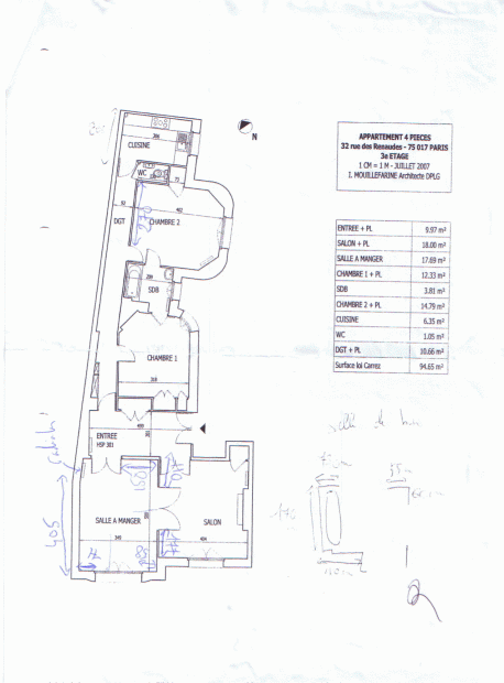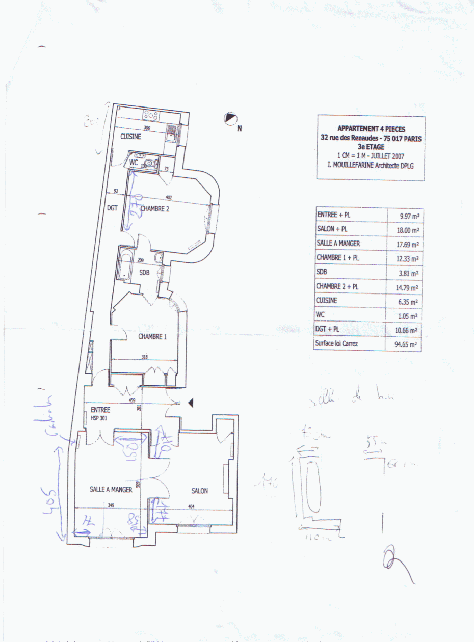 Appartement de 4 pièces placé près du marché Poncelet (rue des Renaudes), refait à neuf il y a 8 ans. Il est situé au 3ème étage d'une belle résidence calme.